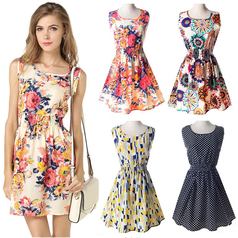 KILY Korean Casual Sleeveless Dress Printed Dress 5a0019